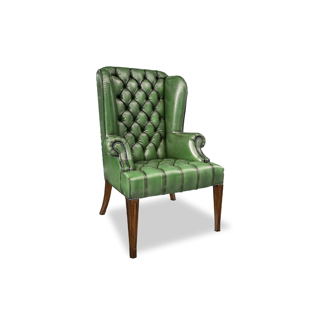 Queen Anne Tufted Wing Chair (Plain Arm-Tapered Leg)
